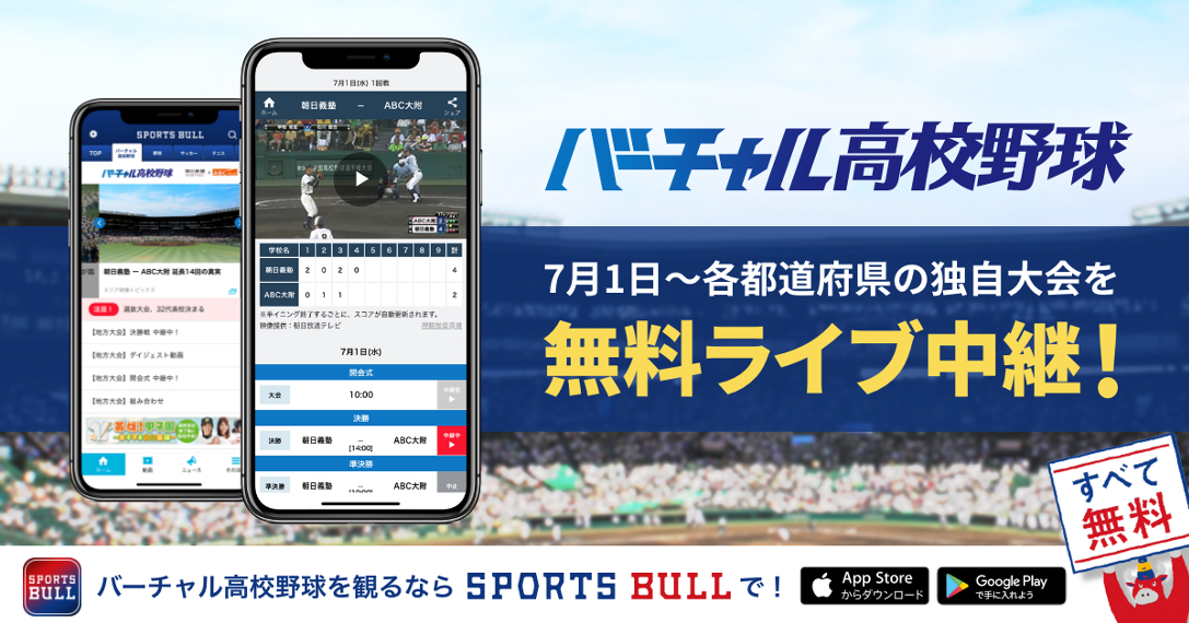 高校野球メディア「バーチャル高校野球」にて、7月から各都道府県で開催される独自の地方大会をライブ中継することが発表されました。